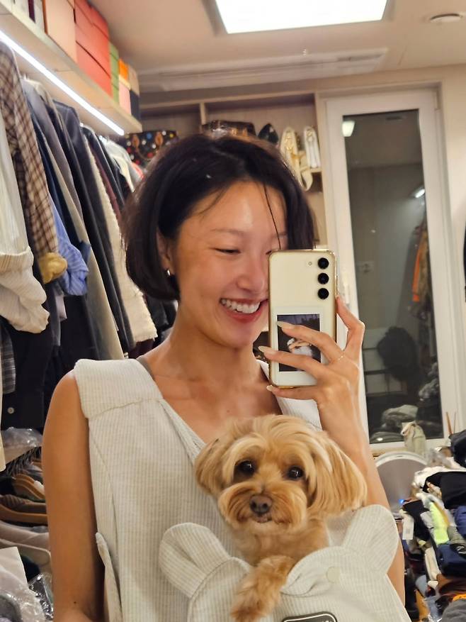 반려견을 품에 안고 환하게 웃는 모습에서는 ‘순둥이’ 안혜진(화사 본명)의 따뜻함이 느껴진다.