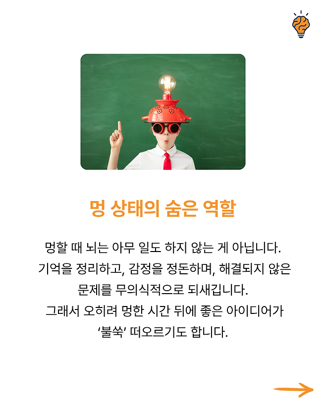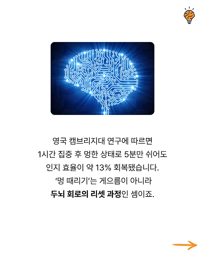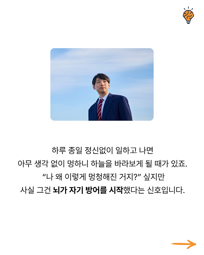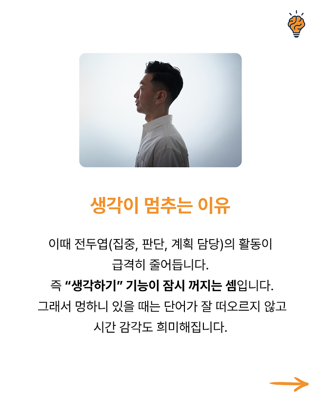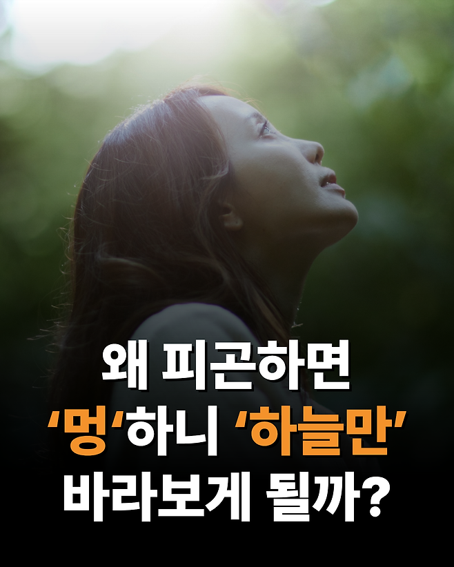“왜 피곤하면 ‘멍’하니 ‘하늘만’ 바라보게 될까?” 뇌생각 2025년 10월 10일 오전 08:06 조회수 2 공유 글씨 축소 A 글씨 크기 초기화 글씨 확대 “왜 스트레스 받을 때 단 음식이 당길까?” “왜 생각이 많을수록 잠이 잘 안 올까?” “왜 익숙한 길은 잘 기억하면서 사람 이름은 자꾸 까먹을까?” “잠들기 전 번뜩이는 아이디어, 왜 아침에 기억나지 않을까?” “왜 초콜릿을 먹으면 기분이 좋아지고 집중력이 살아날까?”