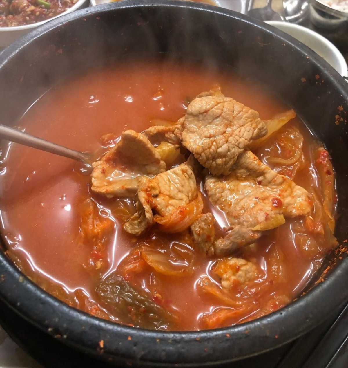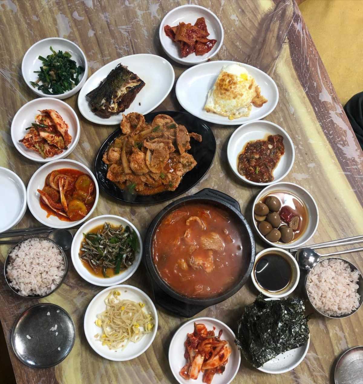 제육볶음을 시키면 김치찌개를 주는 목포 토박이 추천 맛집 상락동 ‘꽃돼지식당’. 제육 백반을 시키면 넉넉한 양의 김치찌개를 서비스로 함께 주는데 그 맛이 예사롭지 않다. 직접 담근 묵은지와 돼지고기를 아낌없이 넣어 푹 끓인 김치찌개는 깊은 맛으로 메인 메뉴라고 해도 이상하지 않을 정도. 텁텁하지 않고 깔끔한 제육볶음 또한 밥도둑이 따로 없다. 거기에 계란후라이, 고등어구이, 각종 나물, 소세지볶음 등 남도의 손맛이 가득한 밑반찬 또한 10가지가 넘는다니 서비스에 가성비까지 완전 대혜자인 맛집이다.