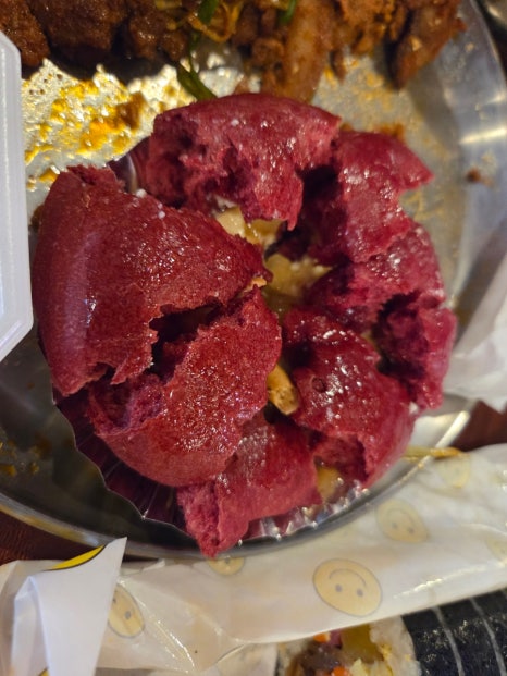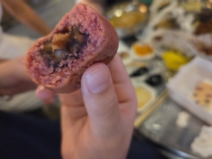 그리고 안에 무엇이 들어있는지 궁금했는데 팥이랑 사과조림이 들어있었다.