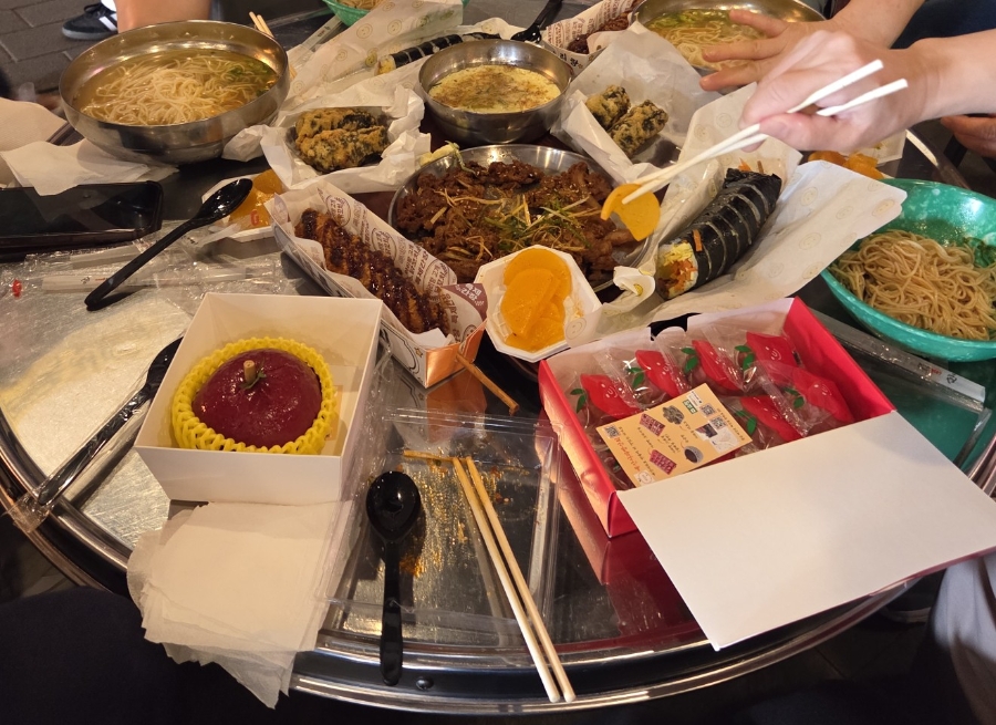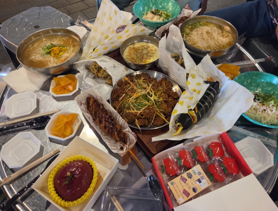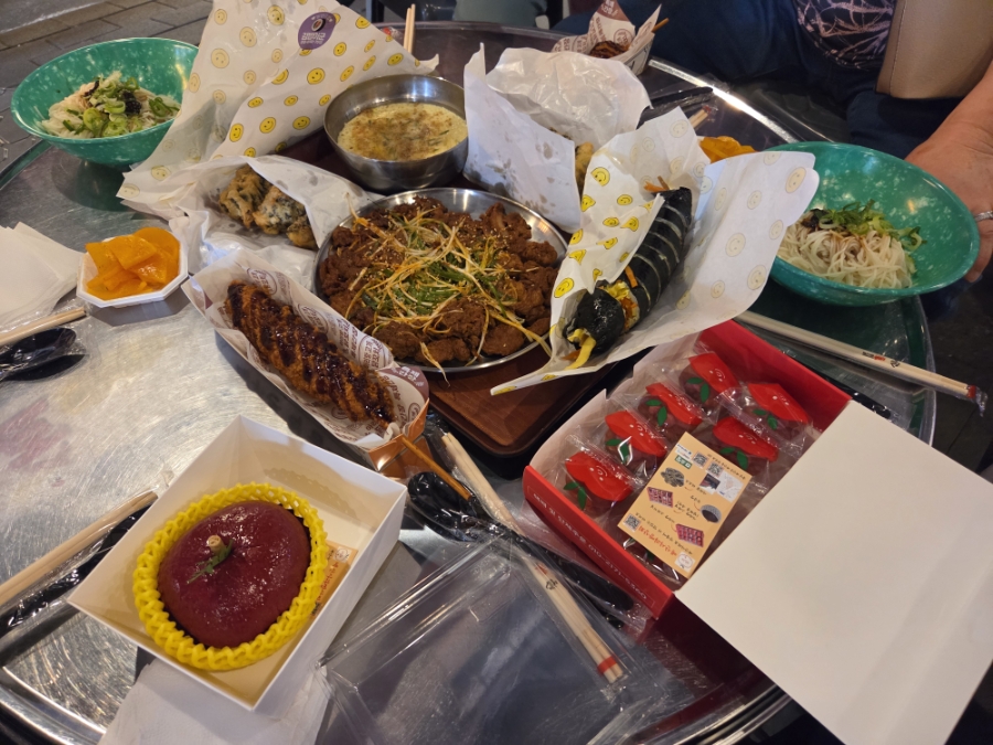 시장에 자리 맡아서 이것저것 음식사오고 한번 먹어볼까!