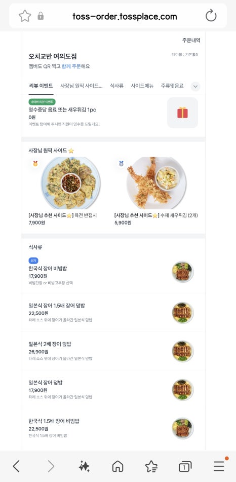 주문방법은 각 테이블마다 QR코드가 있는데, 그 코드 찍으면 바로 메뉴판이 나온다. 그거 보면서 원하는 메뉴 클릭클릭해서 주문하기 클릭하면 완료!