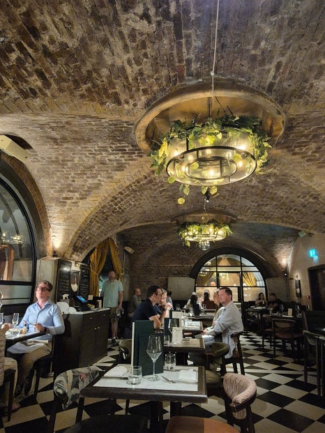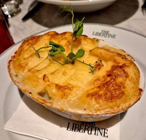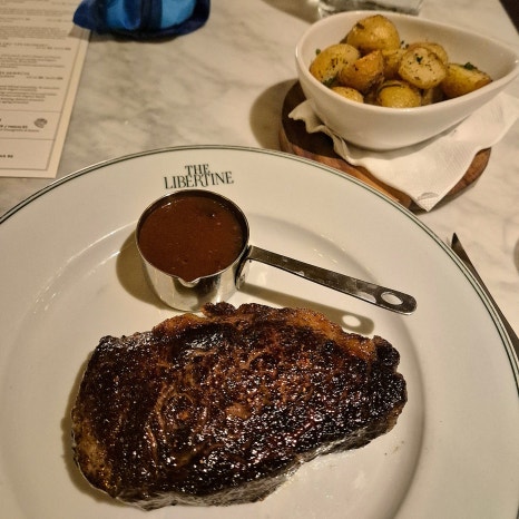 런던에서의 하루를 마무리할 저녁 식사는 로열 익스체인지 은행 건물의 지하 금고를 개조해 만든 레스토랑 겸 바 ‘더 리버틴’을 추천한다. 웅장한 기둥과 높은 천장, 고급스러운 분위기가 인상적인 공간으로, 비즈니스 캐주얼 드레스코드를 지켜야 입장 가능하다. 저녁 시간에는 붐빌 수 있으므로, 공식 홈페이지를 통해 사전 예약하는 것을 추천한다. 등심 스테이크와 피쉬 앤 칩스, 시그니처 에일 맥주로 끓인 소고기 파이 등 전통적인 영국 펍(Pub) 요리를 현대적이고 고급스럽게 재해석한 것이 특징이다. 일요일에 방문하면 영국인들이 일요일에 즐겨 먹는 전통적인 스타일 메뉴인 ‘선데이 로스트’를 선보이기도 한다.