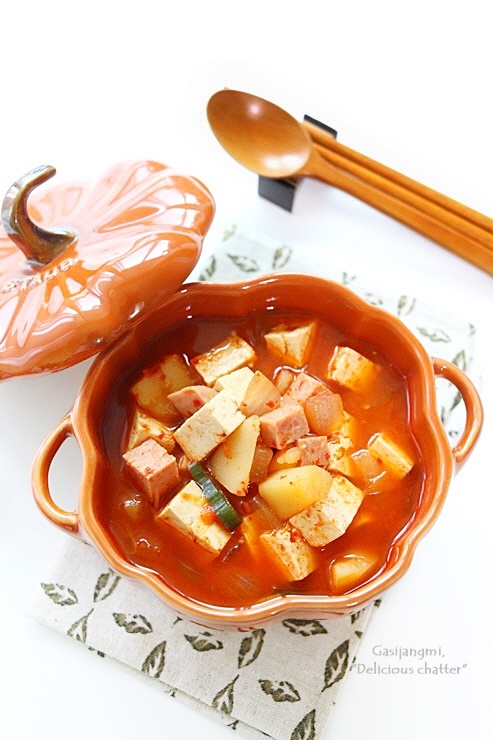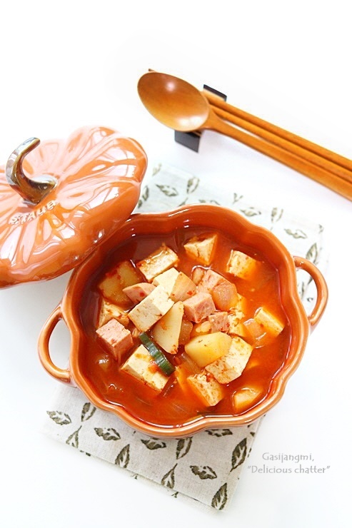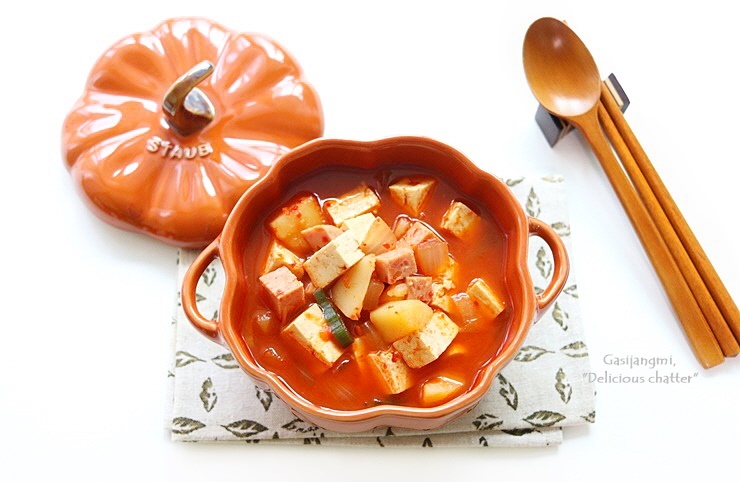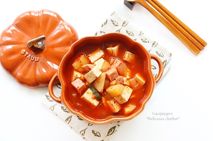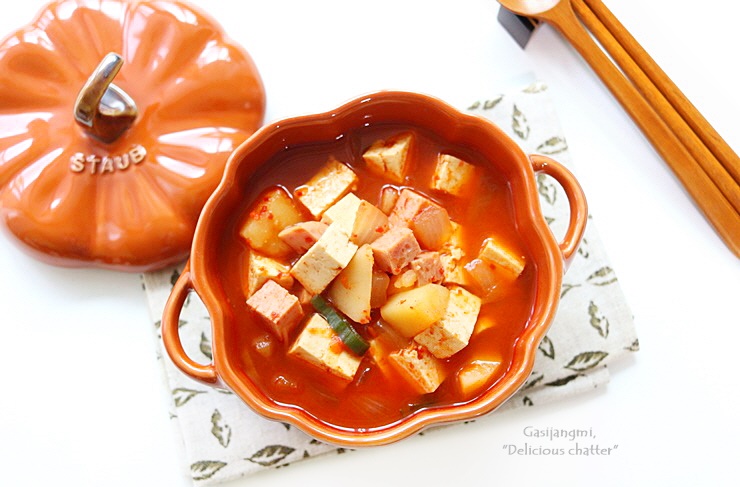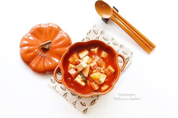 칼칼하면서 맛있은 찌개 반찬으로 추천해 드리고 싶은 스팸고추장찌개에요.