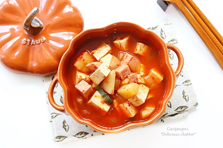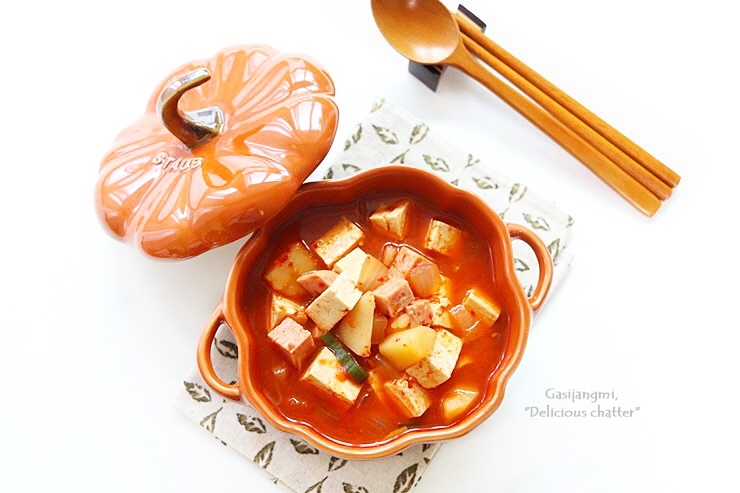 간단하게 김치찌개를 끓여낼 때도 좋은 스팸요리 스팸찌개에요.